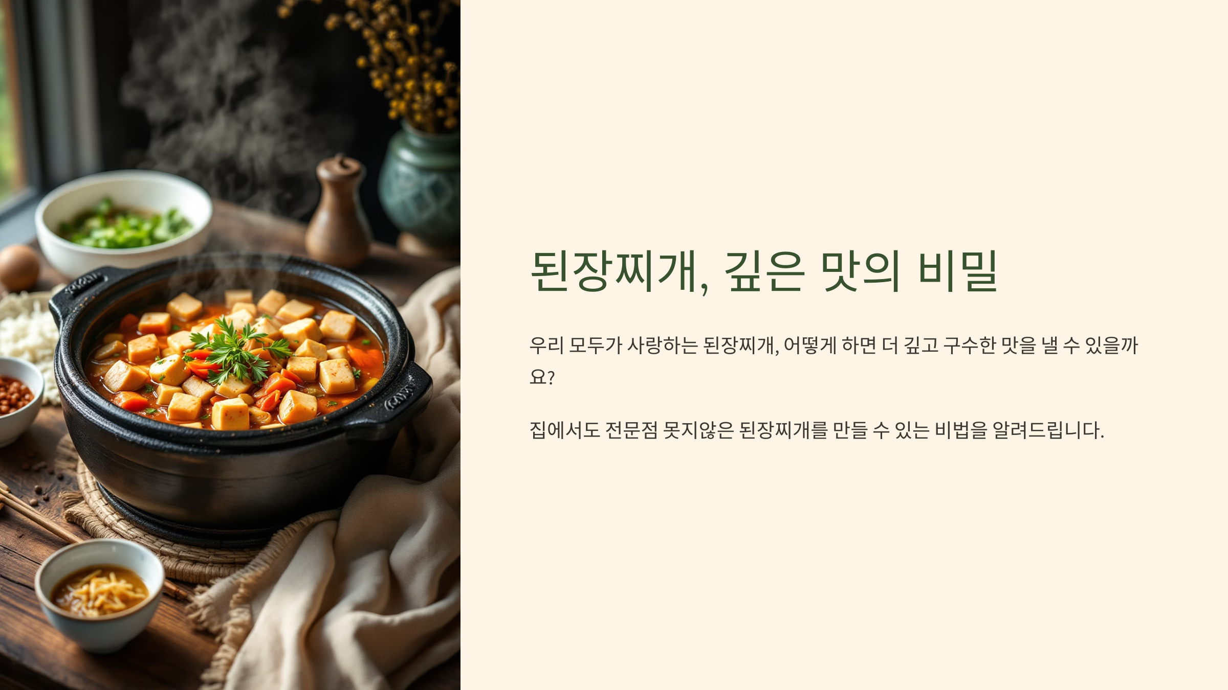 된장찌개는 한국인이 가장 사랑하는 대표적인 가정식입니다. 하지만 단순히 된장만 풀어 끓이면 깊은 맛을 내기가 어렵죠.
